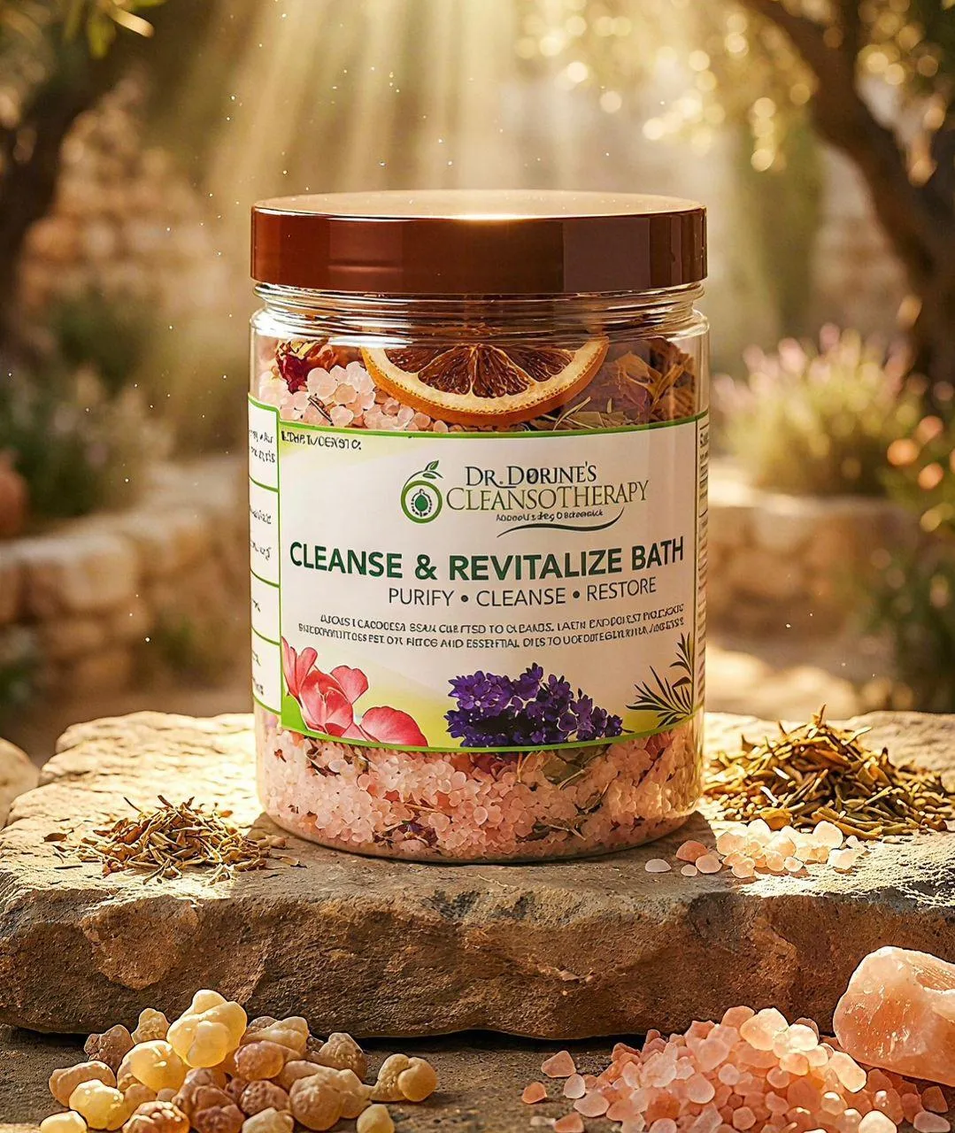 Dr. Dorine’s CleansoTherapy™ Cleansing Herbal Bath Salt is a luxurious mineral-rich soak handcrafted with 100% natural herbs, premium salts, and therapeutic essential oils. Designed to detoxify, restore, soften, and rebalance your skin while calming your entire nervous system. This is more than a bath. It is a healing ritual, a reset, a moment of deep cleansing from the inside out.